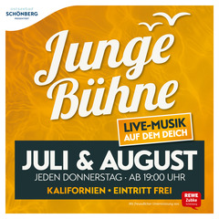 Die Junge Bühne Kalifornien ist eine sommerliche Live-Musikreihe direkt an der Ostsee, die jungen Bands und Nachwuchskünstlern eine Bühne bietet. In entspannter Atmosphäre am Deich präsentieren Musiker verschiedenen Genre jeden Donnerstag im Juli und August ihre Songs vor Einheimischen und Urlaubsgästen. In maritimem Ambiente entsteht ein besonderer Ort, an dem neue Talente entdeckt, Fans gewonnen und unvergessliche Konzertmomente geschaffen werden.